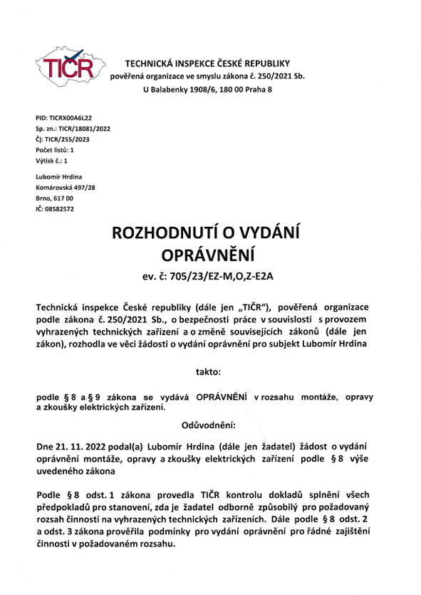 Spolehlivé elektroinstalace a moderní technologie pro váš domov i firmu.