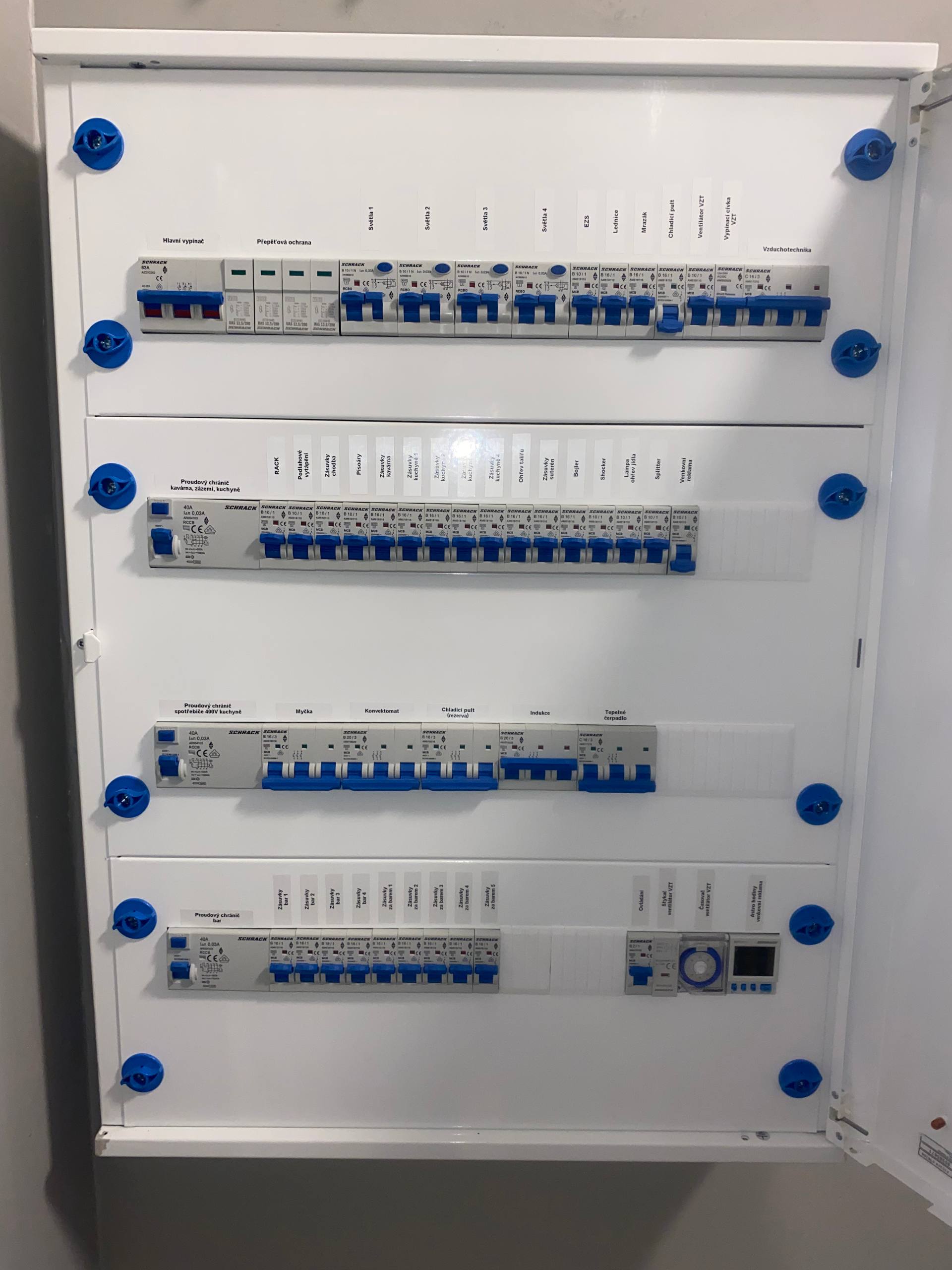V nově vznikající kavárně byla realizována kompletní silnoproudá a slaboproudá elektroinstalace. Součástí projektu byla instalace systému elektrické požární signalizace, zabezpečovacího systém, kamerového systému a audio rozvodů pro ozvučení prostoru. Elektroinstalace byla provedena s ohledem na estetiku interiéru, bezpečnostní normy a budoucí provozní spolehlivost.